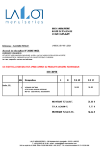 le vitrage reçu est rayé donc recdé le 30/01 et reception le 2/02