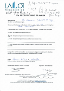 Concernant le montant décoloré, Benjamin a constaté avec le client qu'il y a eu des retouches effectuées sur ce montant et des traces de scotch. Il ne s'agit pas d'un défaut de laquage mais un produit à très certainement été passé. Sur cette menuiserie le client souhaiterait passer en OB au lieu d'un OF.