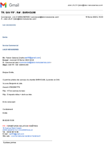BARHOUMI: en attente des vitrages concernés (voir PJ)